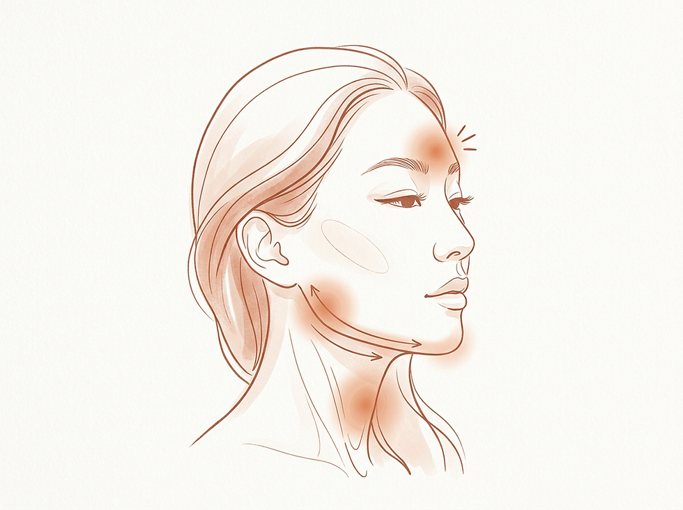 You probably already know that stress shows up on your face. The tight jaw after a long day. The furrowed brow that has become your default expression during video calls. The way your shoulders creep up toward your ears without you noticing, pulling everything from your neck upward into a slow, sustained clench.